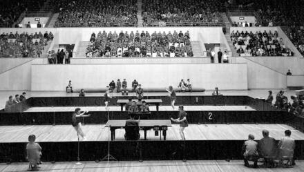 1971年4月13日,中美乒乓球友谊赛在北京首都体育馆举行。图片来源:新华社