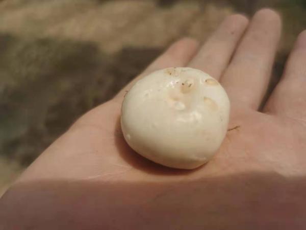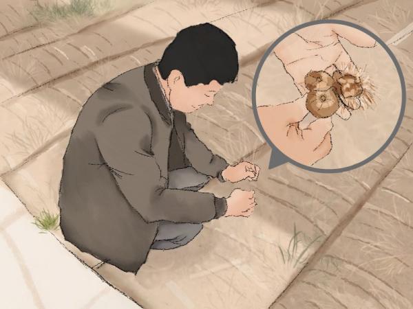 茅仁刚从地里挖出两株藏红花,为森森讲解个中奥妙。原来,藏红花植株地面以下长着两只蒜头大小的球茎。“大蒜头”下,是一只带着须根、却已萎缩得只剩一层皮的扁平的老种球。