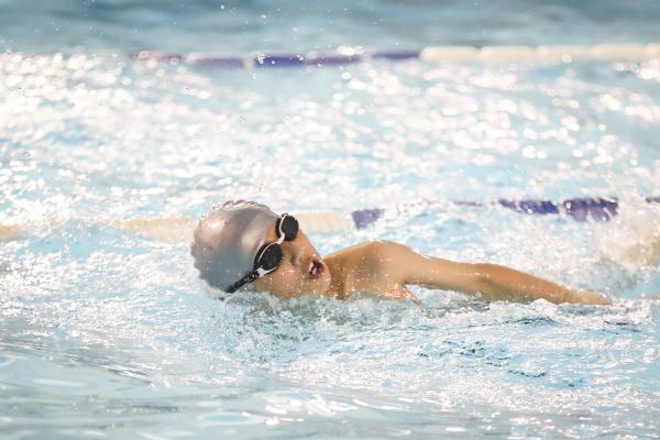 “各就各位,预备,砰!”随着裁判员的发令枪响,一条条“小飞鱼”齐齐跃入碧波池水,展开速度较量。站在场边,昔日“亚洲游泳王子”沈坚强的脸上,露出一丝微笑。