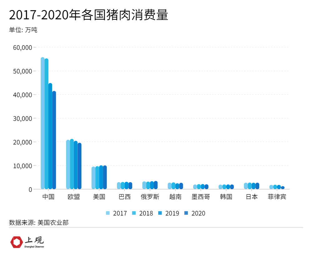 中国是猪肉消费大国,2020年,中国猪肉消费量占全世界的47%。猪价相关千家万户。
