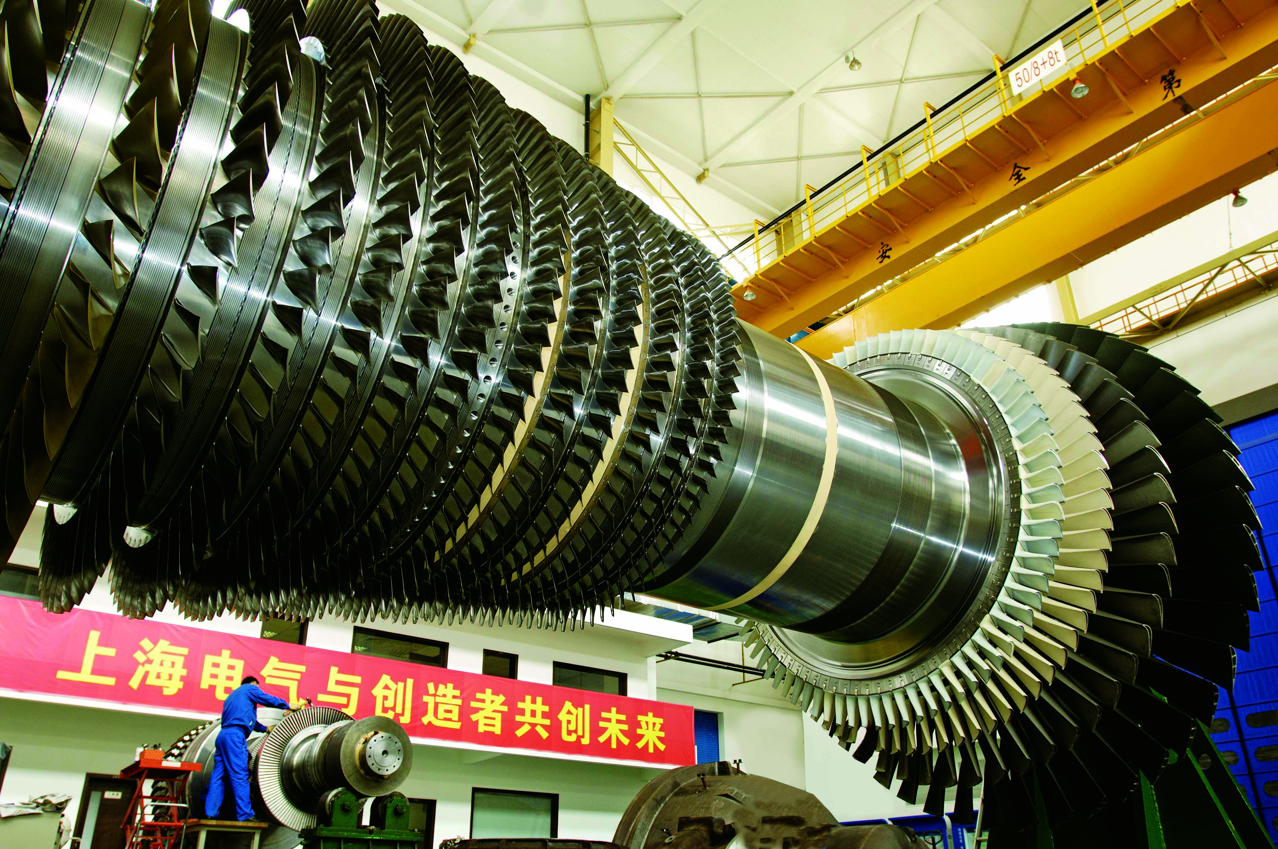 这边,上海重型机器厂的万吨水压机“气势如虹”,就在同一条路上,上海汽轮机厂则在为“一丝一毫”费尽心思。