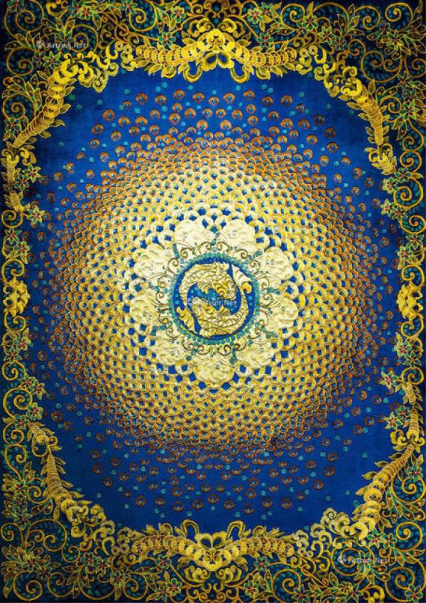 中国工艺美术大师、首届上海工匠、上海非遗项目传承人程美华打破传统丝毯平面格局,使金山丝毯从平面走向立体,独创了海派艺术新风格。其丝毯作品《源源不断》釆用天然蚕丝手工编织,作品设计釆用内方外圆的古铜钱,层层叠叠堆满山,两边由古铜钱汇成两条龙。