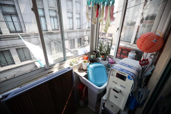三个阳台被她充分利用,一个装了抽水马桶与淋浴设施,成了厕所、淋浴房,一个成了储物间,一个装上了水池与洗衣机,可以在这里洗洗衣服、洗洗菜。郑阿姨对小家挺呵护,房间内收拾得妥妥当当,10年前添置的新家具如今还看着挺新的,木地板擦得锃亮。“房子越旧越破,住在里面的人就越要收拾得干净整齐。这样,生活才有奔头。”