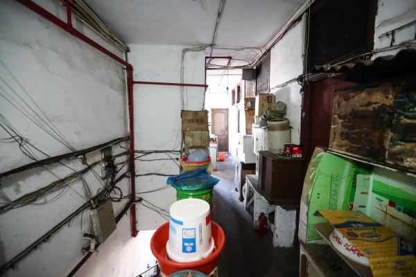 最大的问题就是没有厨房。因为“纸片楼”是按照办公楼设计的,没有厨房的配置,平时大家都在公共楼道烧饭。楼内无法安装排烟罩等设施,烧饭高峰时,40多户人家开火,楼道内烟熏火燎,还会飘进房间内。