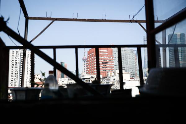 在这个让人抬不起头的小房间内,只有一扇天窗对着室外,能远远看到东方明珠。睡觉、上厕所、做饭、吃饭,唐阿姨和儿子的吃喝拉撒,都在这间阁楼内。