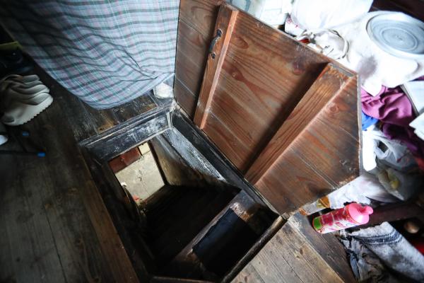 阁楼内空间太局促,她家放不了多少储物柜,很多东西,白天都堆在床上,晚上睡觉时再搬下床,放在地上;因为进出要从阁楼地板上的“洞”,她家至今没啥大电器,一个容量不大的电冰箱是当年好不容易从“洞”口塞进来的……