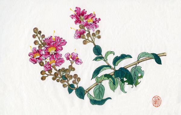 “五月榴花照眼明,枝间时见子初成。”农历五月是石榴花盛开最艳的时节,所以又雅称“榴月”。石榴花有大红、桃红、橙黄、粉红、白色等色彩,以火红色居多。石榴的花与果并生枝头,边开花边结果,形成其特有的景致。