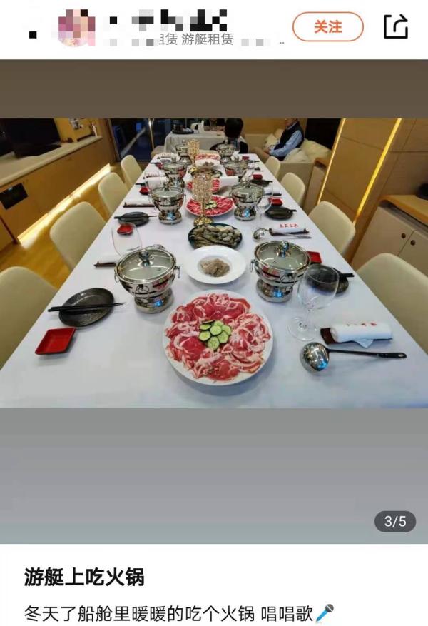 在“大众点评”的消费者评论区,有顾客晒出在一艘黄浦江游艇上举办招待晚宴的照片,清晰可见部分餐盘的下方放着酒精灯,且正处于燃烧状态。记者致电该游艇俱乐部,咨询在艇上使用明火是否违反消防规定、存在安全隐患等问题,工作人员答复称:“上海的游艇俱乐部很安全,不会像个人游艇疏忽管理。”