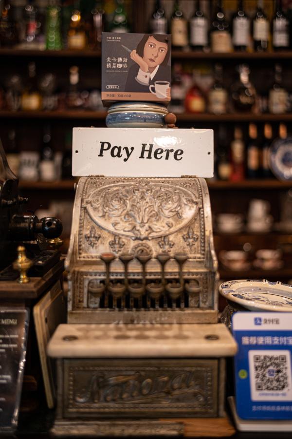 走廊的角落里摆放着一个造型超级华丽的古董收银机,是“小酒馆”里那台的升级版。