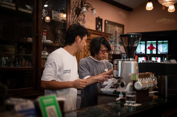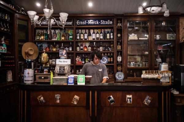 经过这番压花缭乱的参观,记者回到小酒馆偶遇了经营展馆的老板韦美阳(右)。
