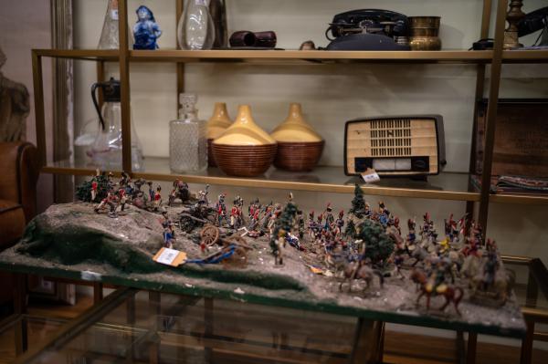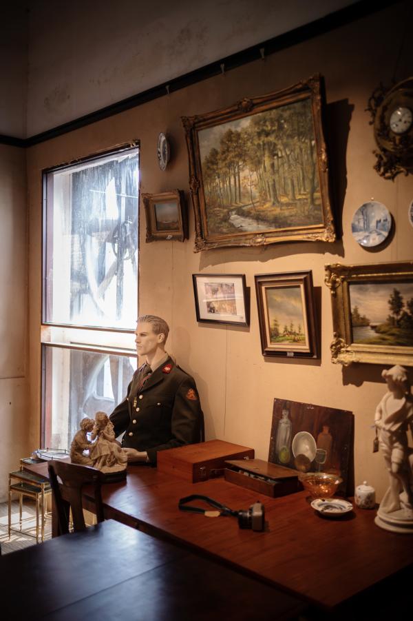 墙上悬挂的油画,欧洲士兵的军服,都是展厅的主人从欧洲的跳蚤市场等渠道淘来的,现在成了展厅空间的一部分。