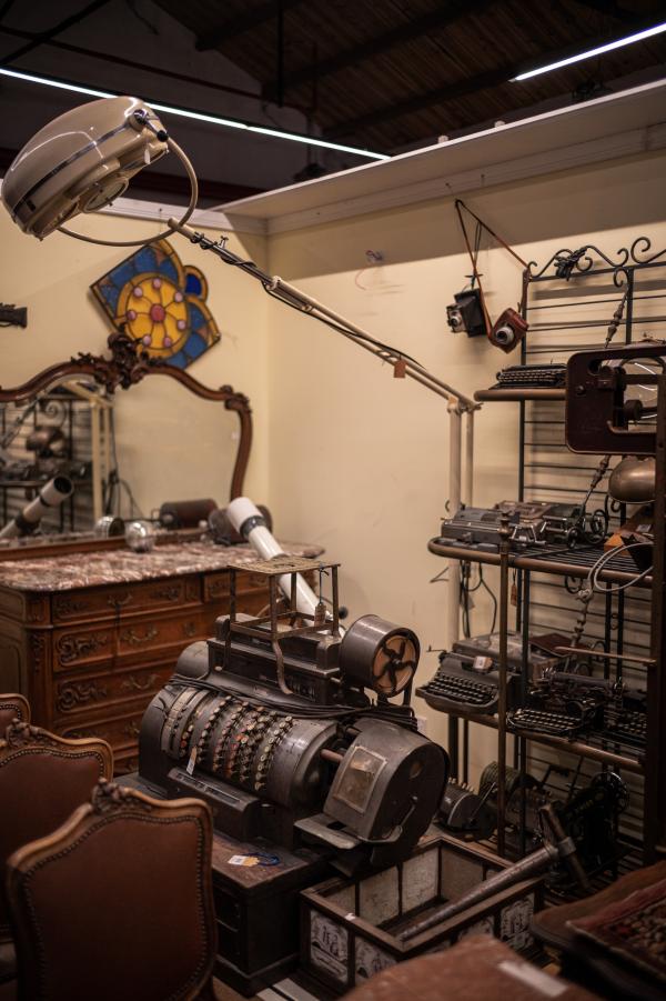 这个展厅的摆件还多了几分“科技感”和“现代感”。古董打字机,古董湿板照相机,古董收银机,放大机,如果拍摄年代戏,来这里寻找道具确实能够大大增强画面的“实感”。