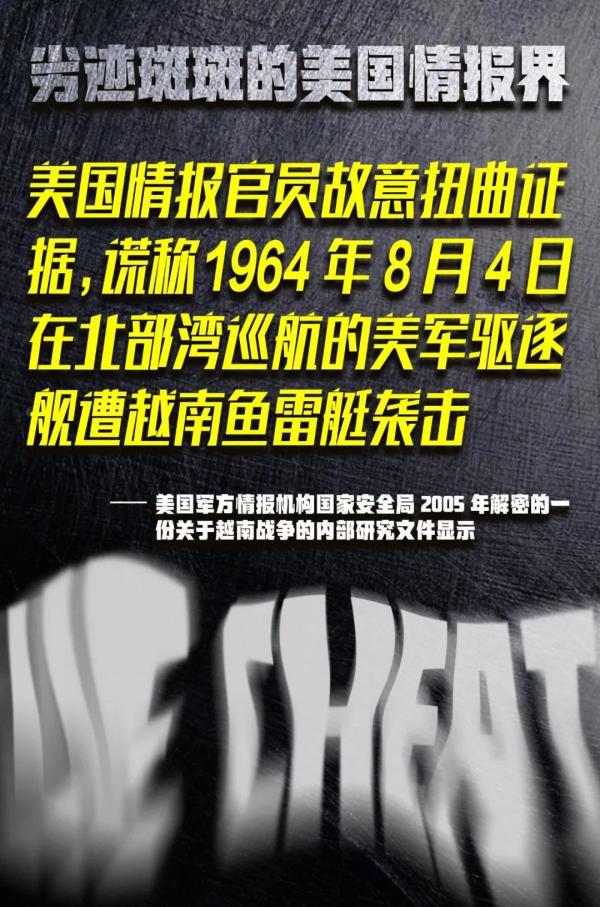 美国国家安全局2005年解密的一份关于越南战争的研究报告显示,有情报官员故意扭曲证据,谎称1964年8月4日在北部湾巡航的美军驱逐舰遭到越南鱼雷艇袭击。时任美国总统林登·约翰逊随后下令对越南北部进行轰炸,“北部湾事件”成为美国对越南战争升级的导火索。
