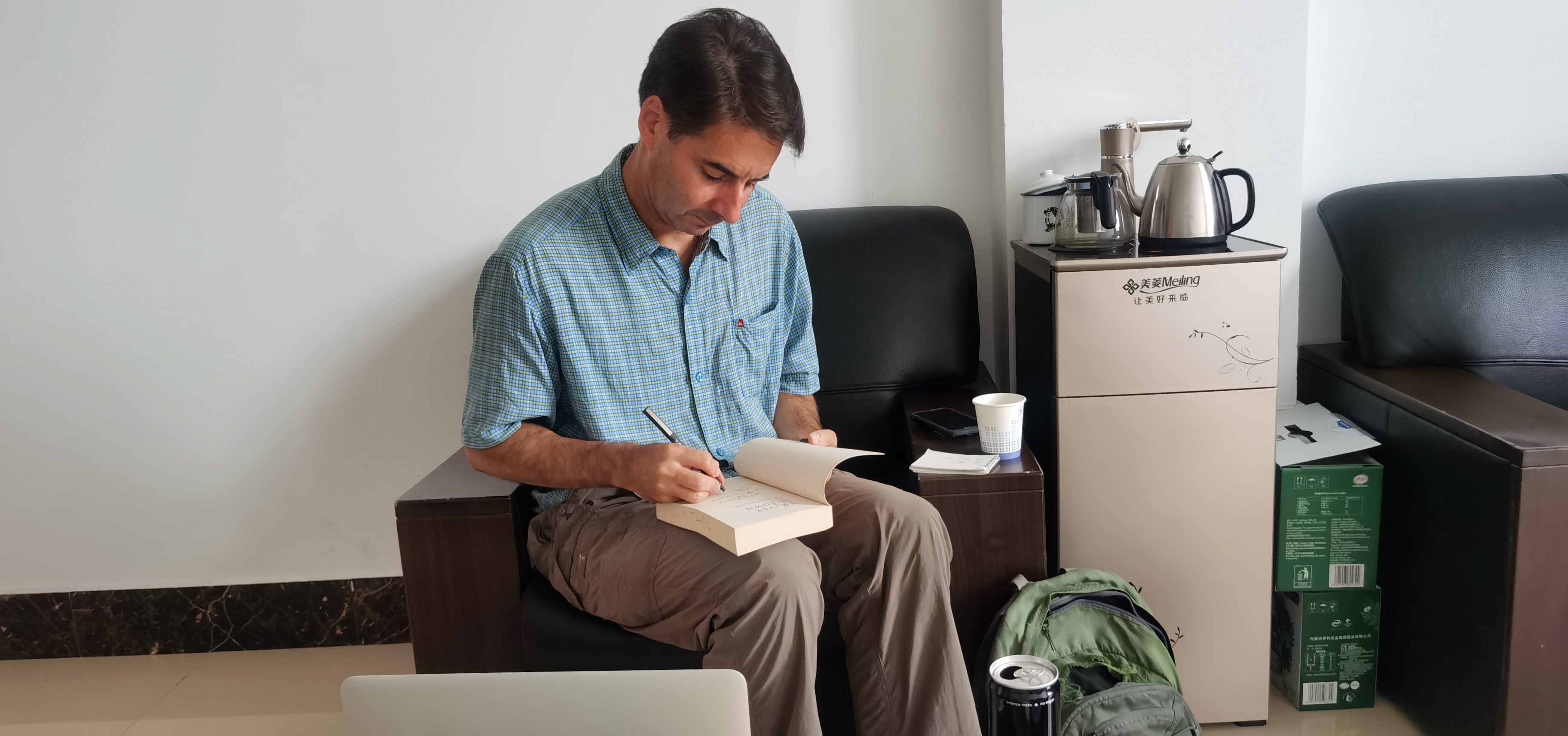 “抱歉打断一下。”一位女老师闯进办公室,她也是何伟曾经的同事,家里至今保留着当年何伟作为临别礼物赠送的瑞士军刀。她请何伟在英文版的《江城》上签名。何伟欣然同意,并顺势约了采访,打算追问师范生的具体数量。