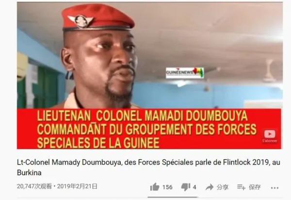 而一段2019年的新闻视频显示,马马迪·敦布亚在2018年成为几内亚陆军特种部队的负责人后,曾于次年在西非的毛里塔尼亚率领部队接受了美军的训练,并在视频中对美国的援助表示感谢。