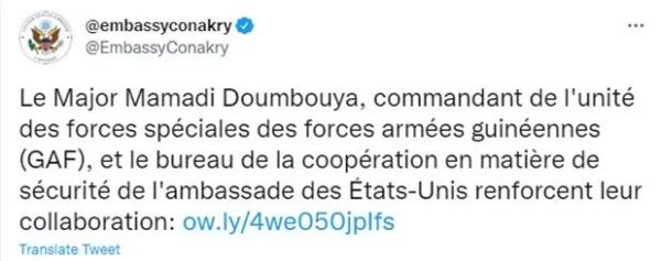 原推文称,马马迪·敦布亚在当时曾与美国大使馆的安全合作办公室进行了沟通,双方表示应当“加强合作”,但推文并没有指出所谓“合作”的具体内容是什么。