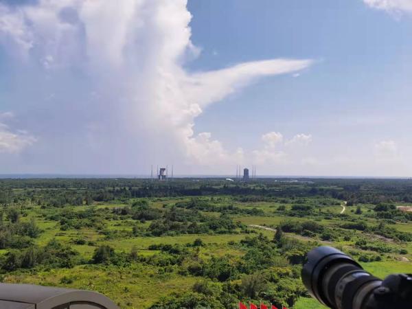 9月20日下午一时许,在文昌航天发射场内和周边不少酒店窗台上,等待长征七号遥四火箭出征的人们翘首以盼,心情更加火热。
