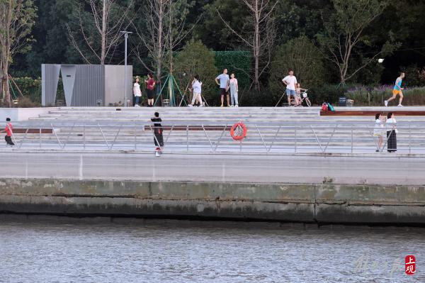 市民沿着新贯通开放的2.6公里蕰藻浜南岸步行,可以路过智力公园、龙盛活力小镇、栋霖科技园、野桥村等多个贯通点,享受沿河的美景。踏上沿河蓝色健身跑道与休闲漫步道串联起的绿色空间与亲水平台,在休闲座椅上休憩片刻,也能感受一片宁静。
