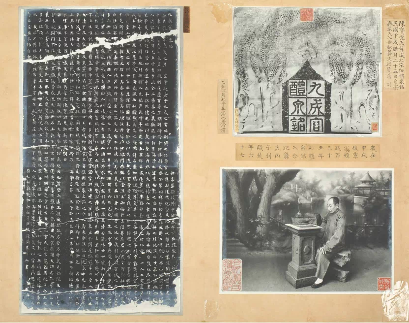 又如,清末收藏家龚心钊“天价”购得的《九成宫醴泉铭》为宋拓宋装本,国家一级文物。从龚心钊装裱进册的购藏借条可以发现,1935年前后,龚心钊以先后两笔付款的形式花费六千大洋购得一本“北宋拓”《九成宫醴泉铭》。当时的北宋拓本极为罕见,为此他特意拍照留念,请来书法家郑孝胥审定并题签,附上自己的校记,并夹入珍贵的晋朝蚕茧纸,珍视有加。