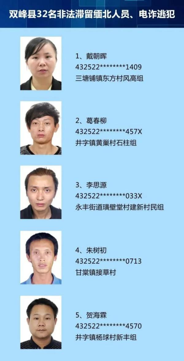 10月15日,双峰警方发布第二批拟惩戒的双峰籍非法滞留缅北人员、电诈逃犯32人名单。