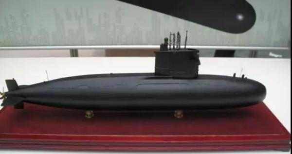 早期台湾地区展示的“自造”潜艇模型,采用拉长水滴型艇型。