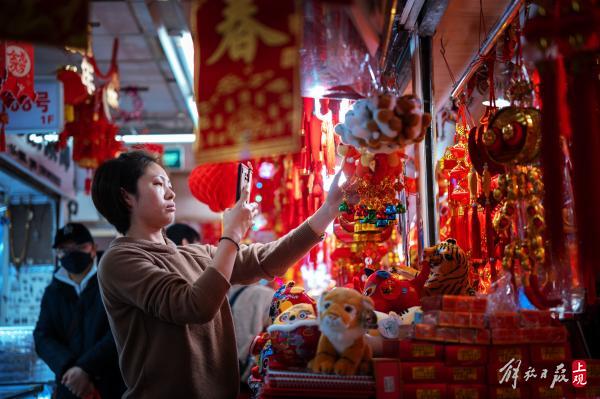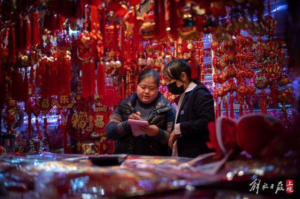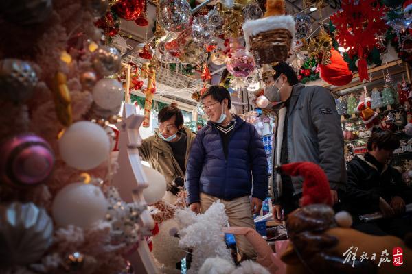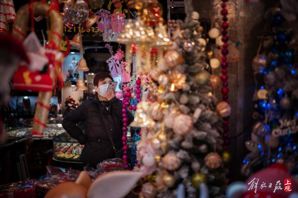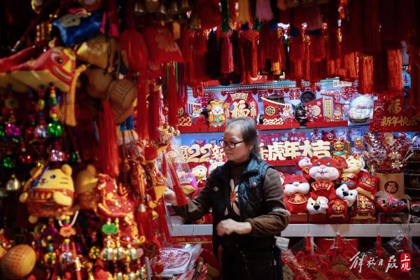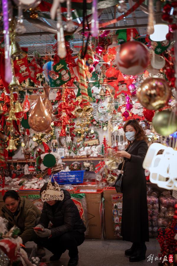 距离新春佳节只剩不到一个月的时间,上海各鲜花、装饰品门店销售热度悄然升温,加之已在眼前的圣诞节和元旦,为市场“再添一把火”。在位于城隍庙旁的福佑路小商品市场一楼,十几家以销售新春装饰品为主营业务的商家依次排开, 一派喜迎新春的火红景象。