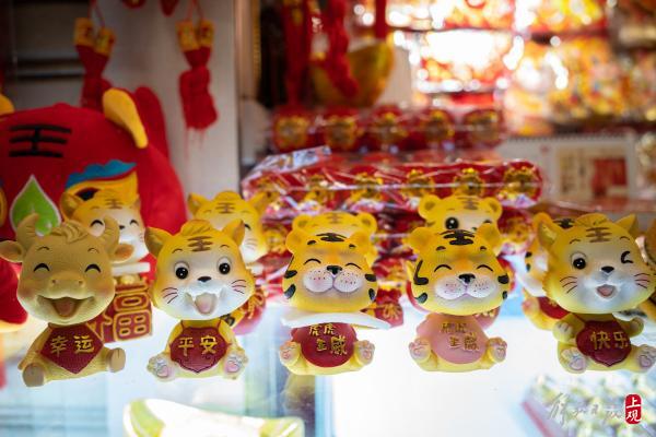 明年是虎年,传统造型老虎布偶、挂饰在小商品市场中占据了重要位置。
