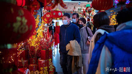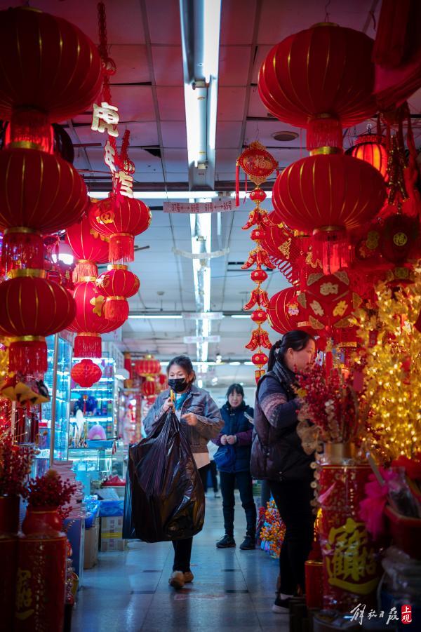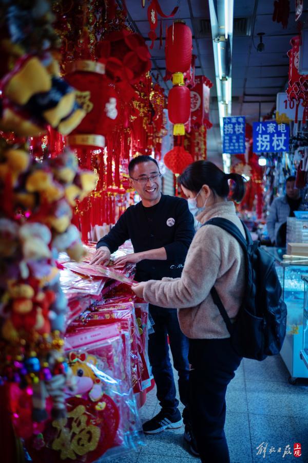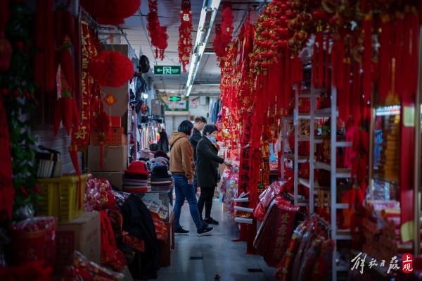 本地老年人三五成群,结伴错峰逛街,趁相对人少的时段来小商品市场选购新春装饰。