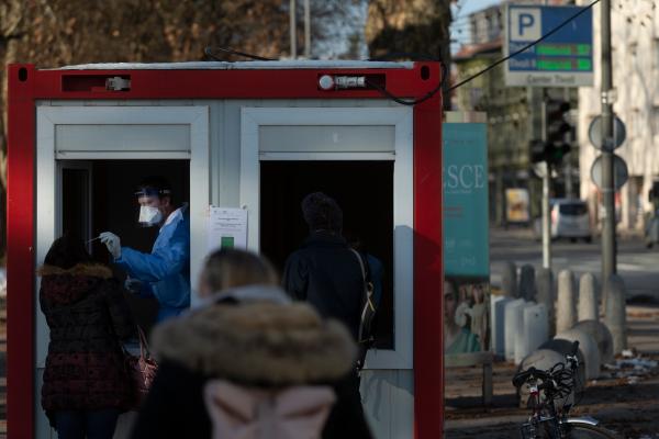 1月12日,人们在斯洛文尼亚首都卢布尔雅那一处新冠检测点接受检测。