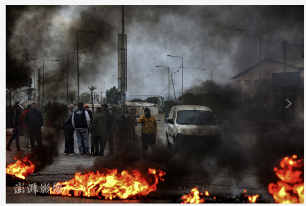 1月13日,黎巴嫩,由于油价飙升和经济状况恶化,黎巴嫩各地民众通过封锁道路进行抗议。