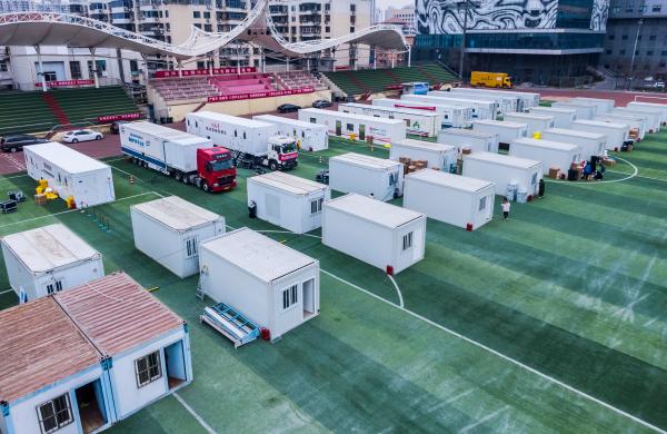 1月13日,位于天津滨海新区塘沽体育场内的10个方舱核酸检测实验室已于近日搭建完成,并全部投入使用。