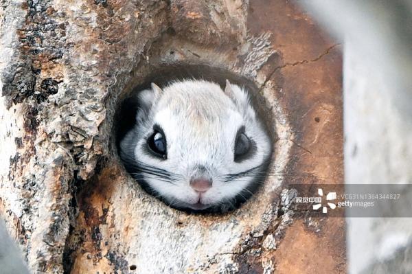 日本北海道侏儒飞鼠树洞中呆萌探头