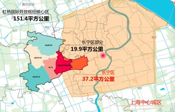 去年2月,《虹桥国际开放枢纽建设总体方案》批复,长宁区全域被纳入“一核两带”功能布局的北向拓展带,是大虹桥上海市域唯一的中心城区,也是上海链接长三角最近的中心城区。