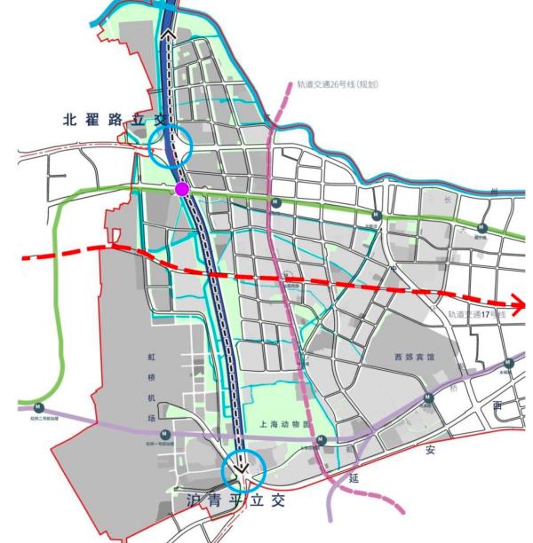 公共交通方面,东虹桥区域现有轨交2号线、10号线和13号线3条横向线路,未来将新增26号线纵向轨交线路,连接现有3条轨交线和71路公交,形成更加完善的公共交通网络。