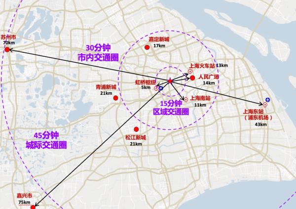 这一名为“3×15”的区域交通圈,即15分钟可达的区域交通、30分钟可达的市内交通和45分钟可达的城际交通,通过道路路网和公共交通的完善,更好发挥虹桥枢纽的对外交通功能,缩短区域对外路程时间。