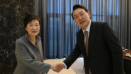 尹锡悦昨天前往朴槿惠的私邸拜访,总统职务交接委员会副委员长权宁世和朴槿惠的律师柳荣夏等人陪同会面。另外,还有约300名朴槿惠的支持者聚集在私邸外,用鲜花和广告牌欢迎尹锡悦。