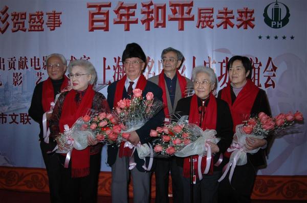 纪念中国电影百年,上海影协于2006年1月16日在和平饭店举办荣获“国家突出贡献奖”庆功联谊会(后排右一为黄蜀芹)