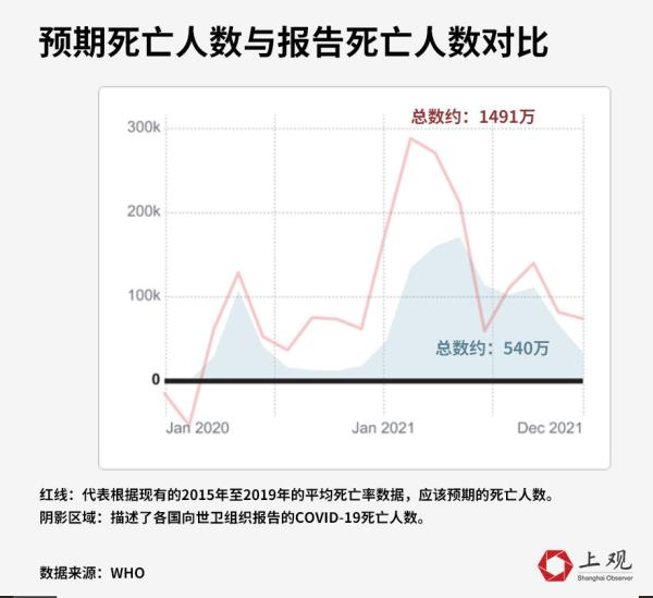 这个1490万的“超额死亡人数”,是指实际已经发生的死亡人数与没有发生大流行病的情况下预期的死亡人数之间的差值。