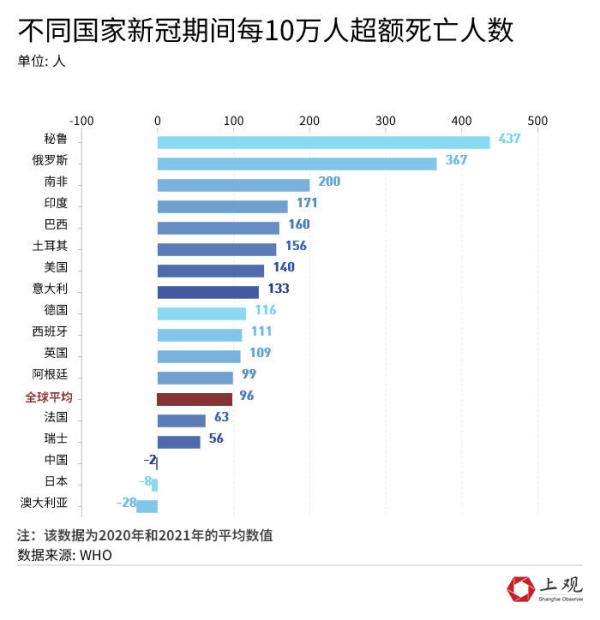 美国、英国、德国、西班牙等国的超额死亡率,也高于全球平均水平。