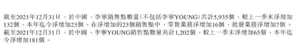 根据李宁有限公司业绩公告,截至2021年底,李宁在中国销售点数量共计7137个。