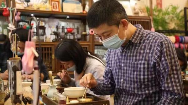 合香也让人平心静气,精神慢慢专注。高羊说,有失眠的客人对香气敏感,很容易进入状态,研磨一小会儿就开始犯困。也有平时多动坐不住的小孩,来合香时,家长说,从没见过孩子这么专注。