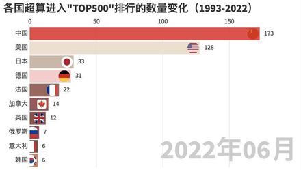 要看一个国家超算的实力,除了看单台超算的计算速度,还要看一个国家能上榜的超级计算机数量有多少。