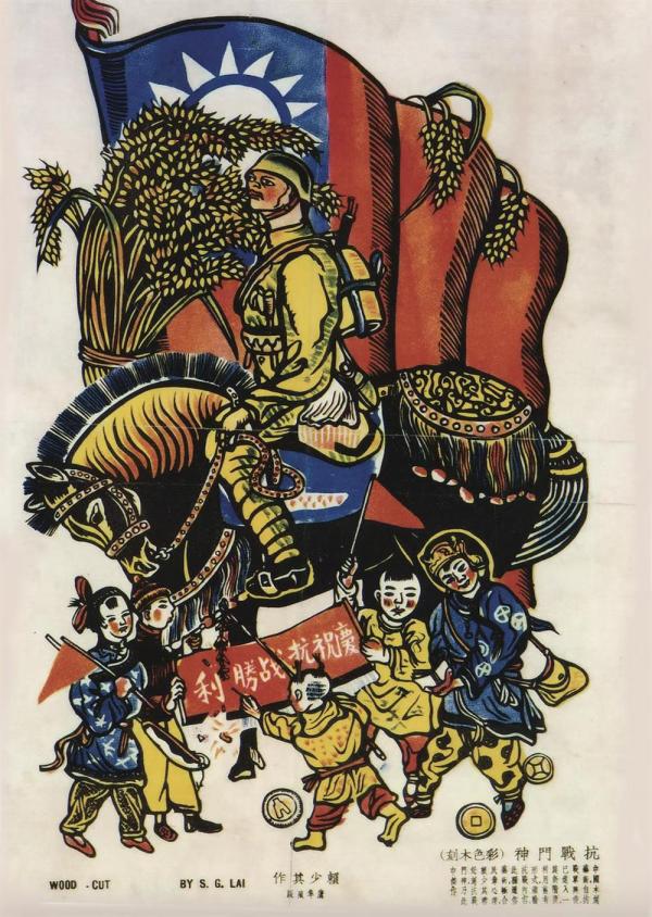 《抗战门神》 套色木刻 纸本 35cm×25cm 1939年 《良友》一四一期