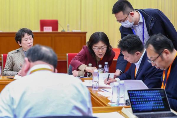 专家们在2020年国家医保目录调整中药专业组专家评审会上讨论发言。(新华社记者 张玉薇 摄)