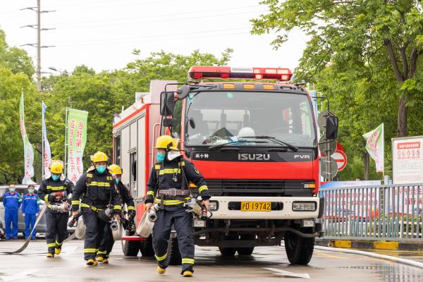 在十几分钟的演练中,参练人员以实战的状态和标准迅速处置,各应急小组实施了相邻罐体喷淋降温、切断气源,快速疏导车辆、人员,紧急救治伤员、规范清废及舆情管控等措施。在参练人员紧张有序的应急行动下,储氢罐泄漏爆燃得以第一时间处置,伤员及时救医,现场恢复正常。