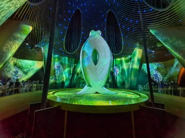 游客回流的同时,上海多个景区也推出了各种新奇的玩法和夜游项目。其中,上海中心推出的全球首个以阻尼器为主角的沉浸式互动光影秀恢复上演。在583米高的空间内,480颗点光源投影至空间顶部,仿佛置身星空下;6种激光共136台,千变万化;244个扬声器和穹顶环形空间打造全息声效,让声音准确定位……当阻尼器随风摆动,便可触发为其量身定制的多组感应器设备,实时捕捉的动态数据激发数千组音乐、影像与光影矩阵的重新组合。科技与艺术融合,人与空间、与自然的实时互动,经过精密的计算后转化为奇幻的自然视听盛宴,成为申城登高游的亮点之一。
