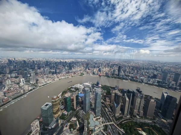 上图:上海中心以阻尼器为主角的光影秀;下图:从上海之巅观光厅俯瞰上海