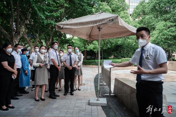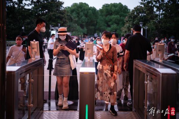 7月7日,室外气温升至37℃,上海文化广场的场务部门员工在烈日下,演练次日开演前的观众进场。考虑到炎热的气温和防疫的严格规定,他们希望在最短时间内完成健康码、入场票核验的过程,保证观众的进场体验。
