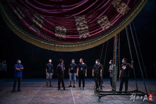 文化广场侧台。刚从舞台上下来的演员戚冰雪,在工作人员的帮助下快速更换造型,准备继续登台彩排。