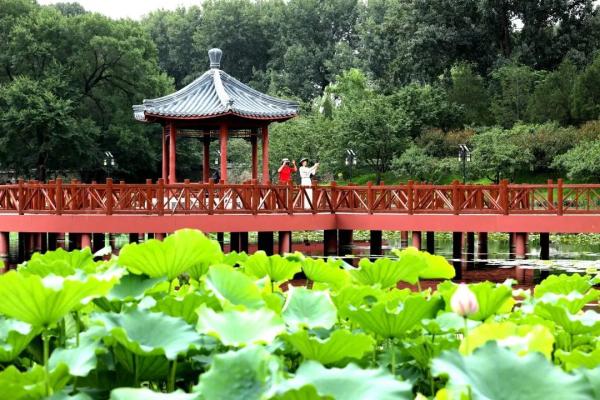每到荷花盛开的季节,圆明园都会出现象征好运的并蒂莲。